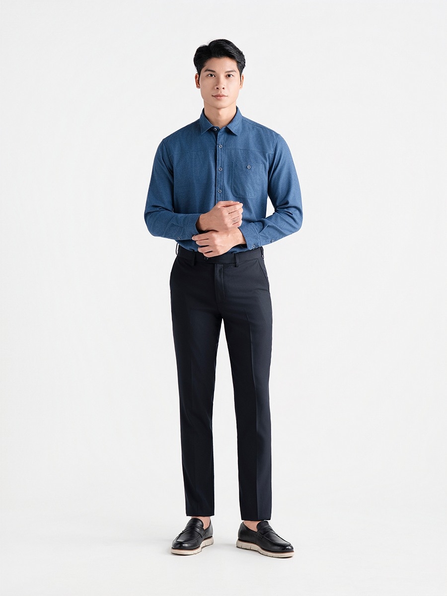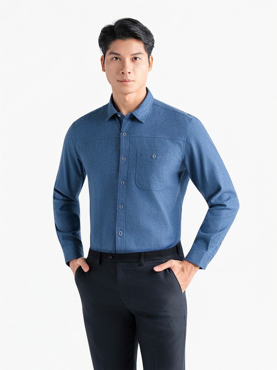 Áo sơ mi kiểu dáng J-form rộng rãi, thoải mái.