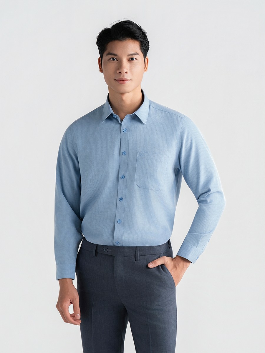 Áo sơ mi dài tay, kiểu dáng Regular Fit dễ mặc, hợp form dáng, áo tà bầu.