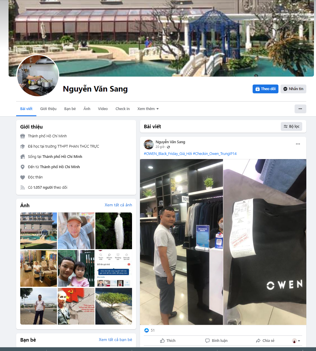 - Khách hàng đăng tải hình ảnh trên trang facebook cá nhân ở chế độ công khai kèm hashtag #OWEN_Black_Friday_GIÁ_HỜI #Checkin_OWEN_TrungIP14.
