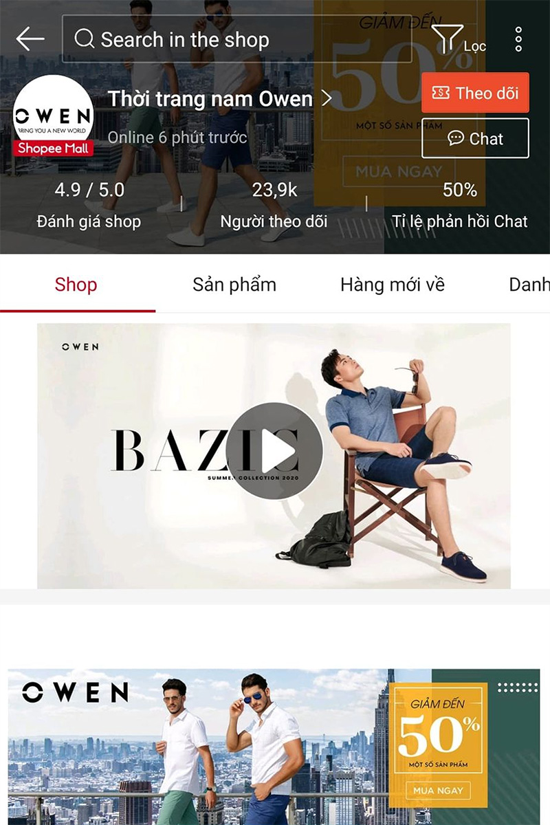 Shopee là sàn mua sắm online quen thuộc với nhiều người Việt Nam, Owen mở rộng sang kênh bán Shopee giúp khách hàng dễ dàng tiếp cận hơn với các sản phẩm chất lượng, chính hãng của Thời trang Owen. Tuy nhiên, Quý khách lưu ý tìm đúng đến địa chỉ Shop Mall chính xác của Owen để mua sắm sản phẩm chất lượng nhất.
